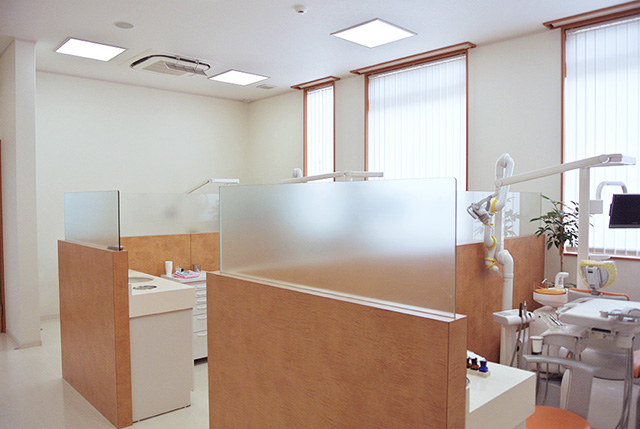 診療室は、各戸パーティションで広く仕切られています。